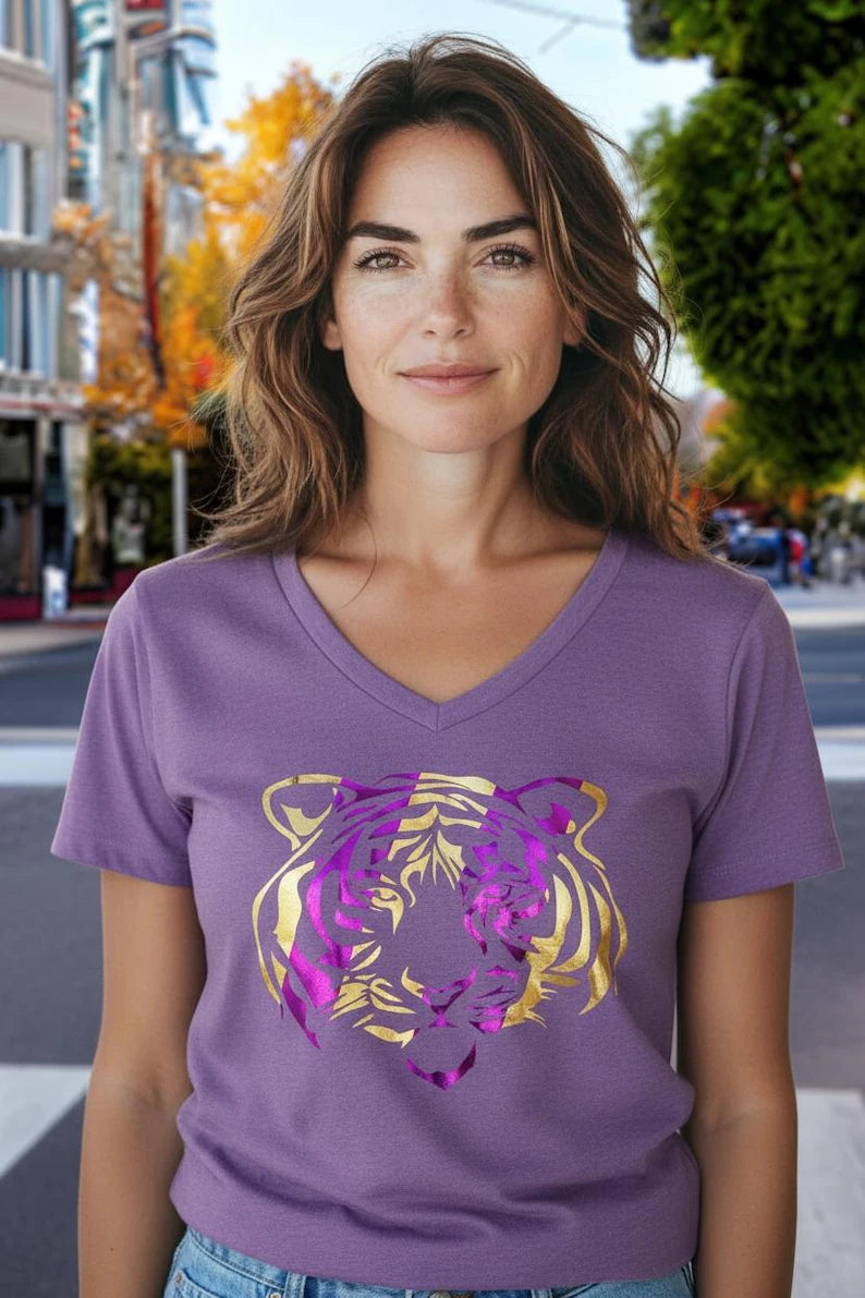 Tiger Gold and Purple Foil Stripe T-shirt